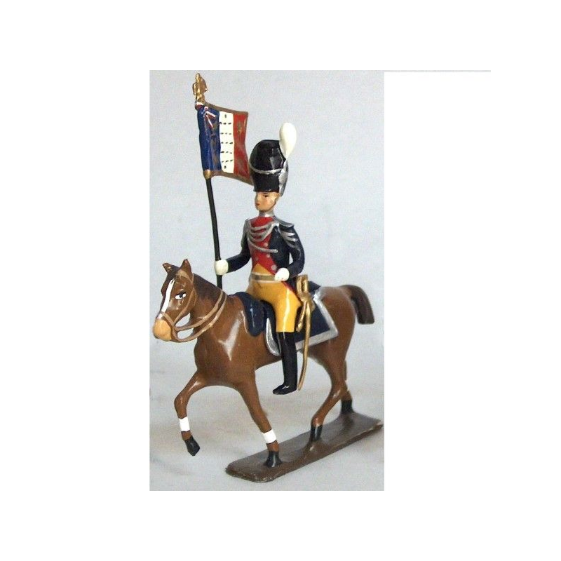 Figurine d'étendard des gendarmes d'élite à cheval (1804), culotte jaune CBG Mignot en plomb.