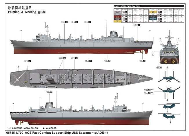 AOE FAST COMBAT SUPPORT SHIP USS SACRAMENTO. Maquette de bateau de guerre. Trumpeter 1/700e